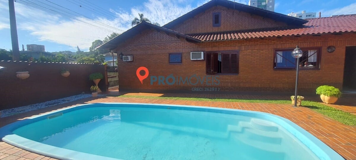 BELÍSSIMA CASA EM ALVENARIA, de esquina, com terreno medindo 21 m x 24 m = 504 m2; casa composta por suíte com closet + 2 dormitórios, banheiro social, sala de estar e jantar conjugadas, cozinha com ampla área, quiosque com churrasqueira, banheiro, área de lazer com piscina medindo 3,50 m x 7,00 m, garagem ampla para 2 carros, toda casa com laje. Imóvel em estilo rústico, em localização privilegiada em Ijuí!