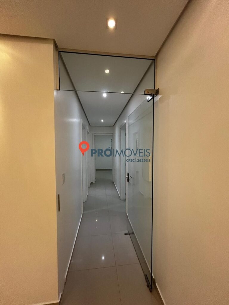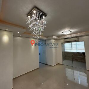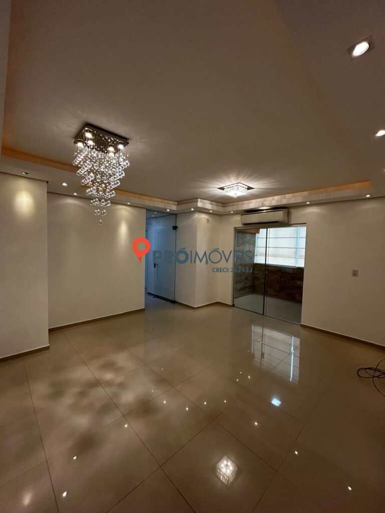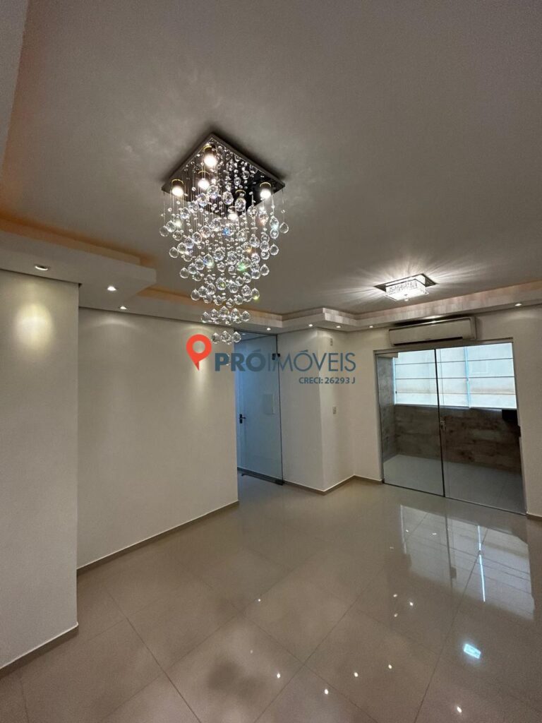 O imóvel conta com 03 dormitórios, sendo uma suíte, além de uma sala ampla de estar e jantar, bem iluminada e com elegantes lustres de cristal. A área íntima é separada por porta de vidro, garantindo maior privacidade aos moradores.