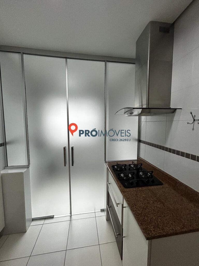 A cozinha é separada e funcional, equipada com móveis planejados, coifa e fogão de mesa. A lavanderia também é independente, com fechamento em porta de vidro. O imóvel possui ainda banheiros com móveis planejados, além de torneiras elétricas na cozinha e no banheiro da suíte.