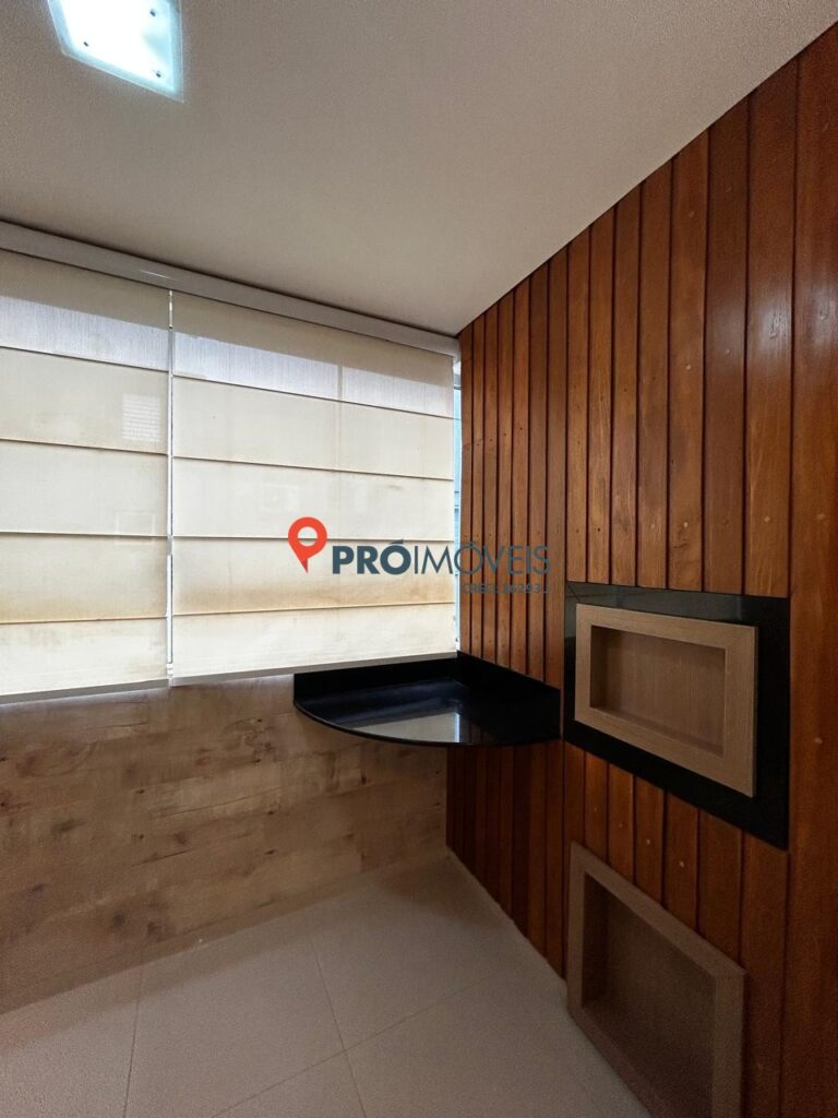 A sacada é um destaque especial, com parede revestida em madeira e cerâmica, criando um espaço aconchegante e diferenciado. O forro em gesso com iluminação planejada valoriza todos os ambientes do apartamento.