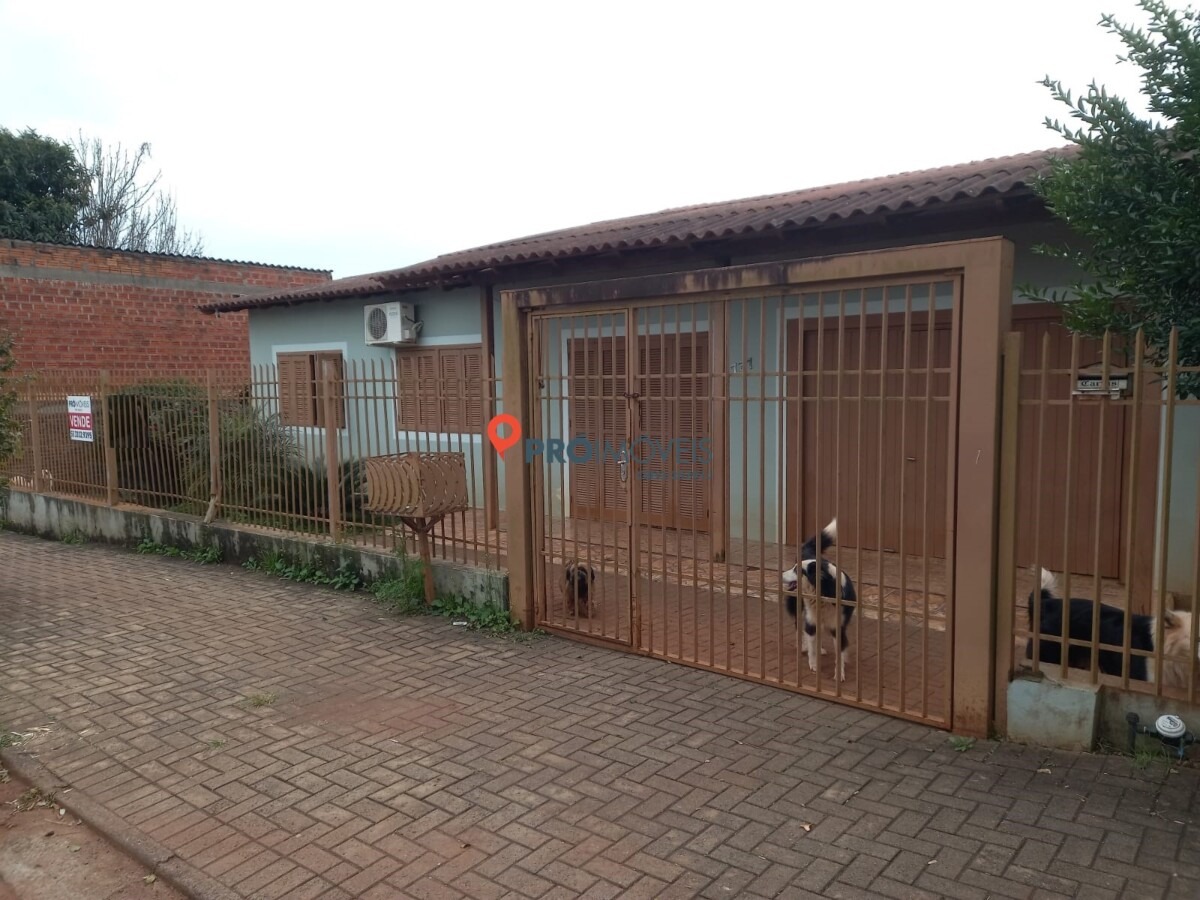 CASA EM ALVENARIA com 3 dormitórios, sala de estar/jantar, cozinha, banheiro, área de serviço, garagem para 2 carros, quiosque com mais uma vaga de garagem. Área construída de 109 m2. Terreno medindo 20 m x 34 m = 680 m2. Casa com laje.