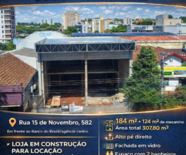 LOJA TÉRREA com 120 m2, dois banheiros, estacionamento frontal com 40 m2, com porta eletrônica, forro em gesso com iluminação pronta. Localizada na Avenida 21 de Abril, ao lado da Maria Canela Shoe Store e Unirol.